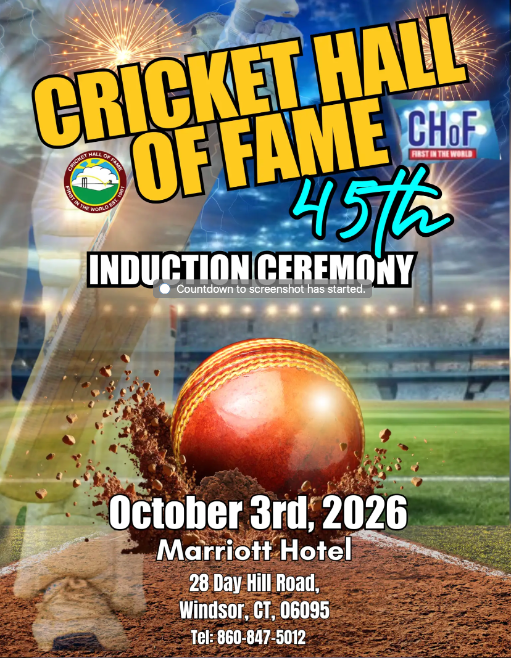 First in the world, established in 1980 under the Sportsmen’s Club, which was founded in 1963. The Organization celebrates an Induction ceremony every year on the first Saturday of October each year. The Cricket Hall of Fame and Sportsmen’s club are in Hartford, CT. USA.