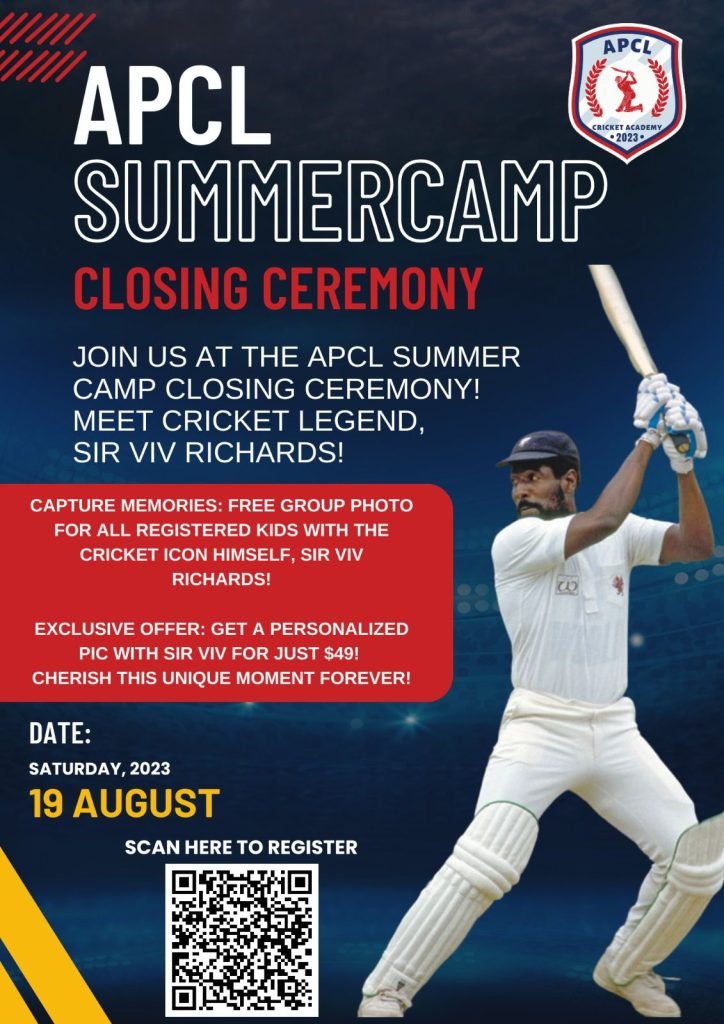 Ceremony Event also concludes FREE summer camp and all participating youths will be rewarded with the “Certificate of Participation” autographed by Legend Sir Viv Richards and co-signed by Jatin Patel, CHoF Board Director, renown multi sport coach, cricket hall of famer with life time achievement award. Youths will have photo opportunity, meet and interact with legend and other coaches at the event as APCL academy moving forward with plan to start yearly trainings from fall 2023.